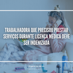Trabalhadora que precisou prestar serviços durante licença médica deve ser indenizada Leia mais » Ramos da Silva Adv 06/08/2021